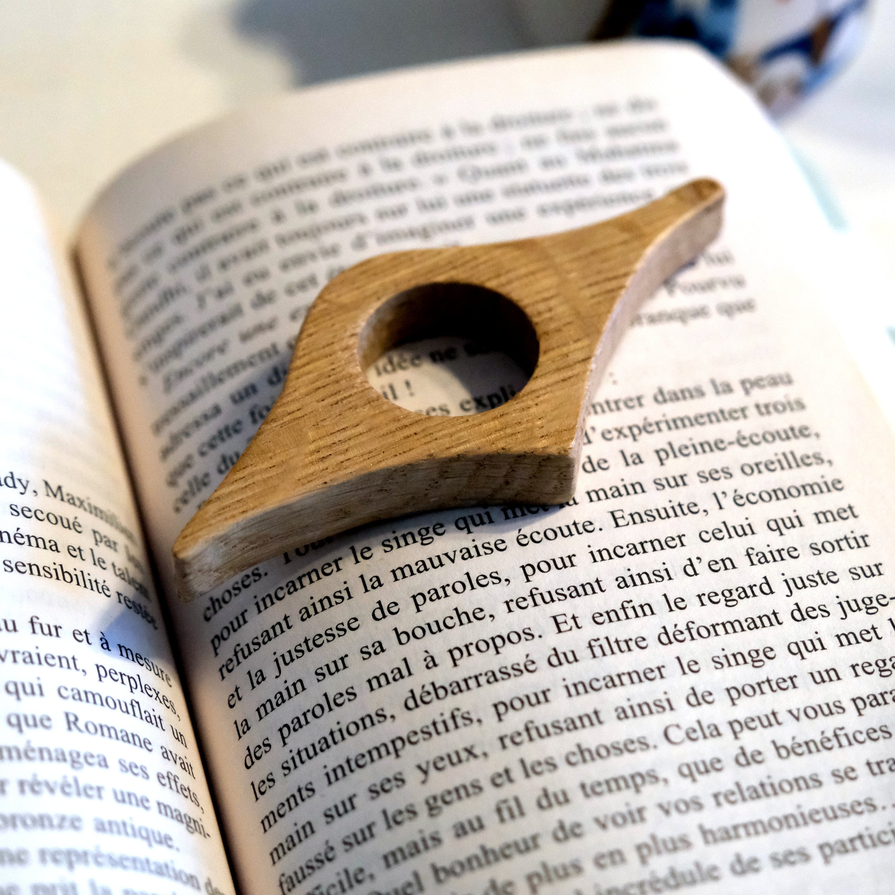 Vous ne connaissez pas? C'est une bague en bois aux formes étranges. Elle est sans engagement mais pourrait bien vous motiver à lire plus longtemps...